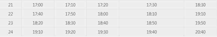 注:中途站点和终点站时刻表为预计时刻,可能会有时间上的误差,请提前10-15分钟到始发站和中途站点购票乘车。